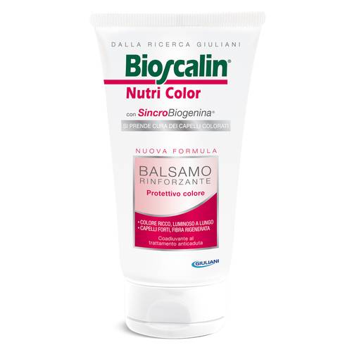 BioscalinNutri Color BALSAMO RINFORZANTE Protettivo colore Il prodotto è il secondo step del programma di bellezza e protezione post colorazione consigliato dalla Ricerca Giuliani. Dopo il trattamento colorante, già concepito per nutrire e proteggere i capelli durante la colorazione, l’applicazione del prodotto dopo il lavaggio permette di prolungare nel tempo la luminosità del colore e preservare la forza dei capelli colorati. Aiuta a districare i capelli, senza appesantirli, oltre a svolgere una preziosa azione rinforzante e protettiva sulla fibra del capello colorato. La sua nuova formula è arricchita con un sistema unico...