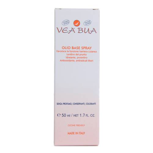 VEA BUAOLIO BASE SPRAY Favorisce la funzione barriera cutanea. Lenitivo del prurito. Idratante, protettivo, antiossidante, antiradicali liberi. Lo spray crea un film omogeneo e persistente ad azione antiossidante contro i danni da radicali liberi. Cute secca o arrossata, screpolature da agenti esterni, protezione del capezzolo dalle ragadi in allattamento (non occorre rimuovere prima di attaccare il lattante al seno), cute sensibile o sottile. Modalità d'uso Agitare bene prima dell'uso. Spruzzare sulle zone di cute da trattare almeno 2 volte al dì. Non massaggiare. Avvertenze Non usare in caso di allergia nota agli ingred...